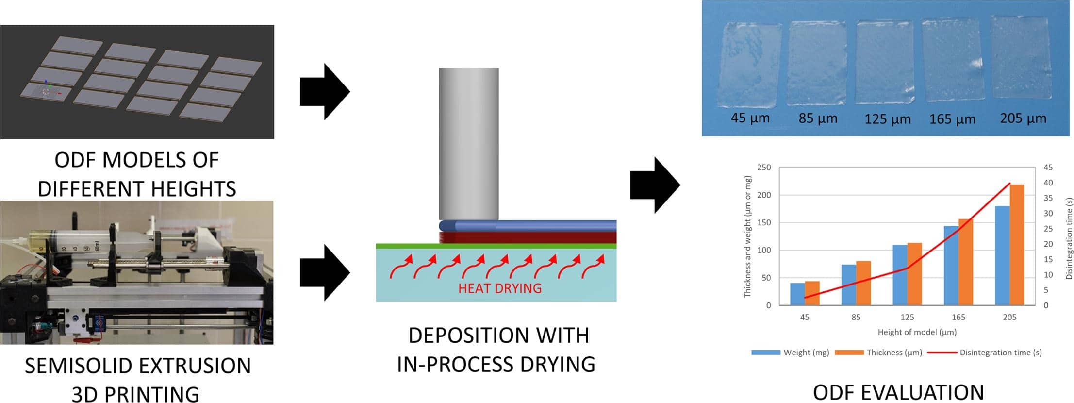 Fig.1 3D printing of multilayered orodispersible films with in-process drying. (Jan Elbl, et al., 2020)
